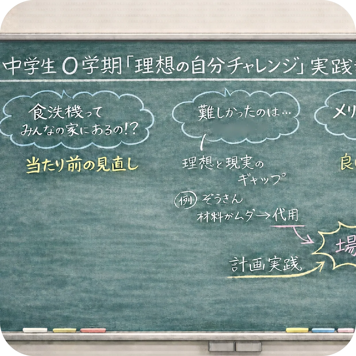 試行錯誤すること、一度の取り組みで終わりにしない姿勢を価値付けることで、「理想の自分チャレンジ」が一回きりで終わることなく続けられるとよい、という価値観を共有します。